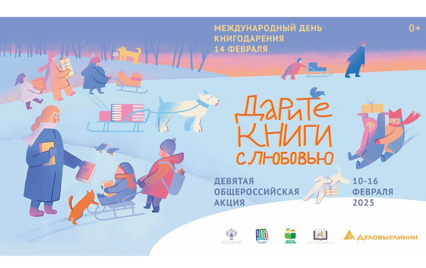С 10 по 16 февраля 2025 года пройдет Девятая общероссийская акция «Дарите книги с любовью». Акция приурочена к Международному дню книгодарения, который с 2012 года отмечается 14 февраля во многих странах мира. Организаторами акции выступают Российская государственная детская библиотека и Ассоциация «Растим читателя» при поддержке Министерства культуры РФ, Российского книжного союза и Ассоциации книгораспространителей.